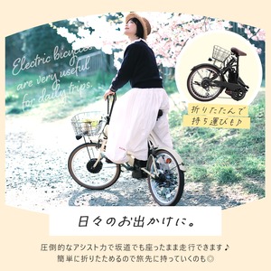 折りたたみができる電動アシスト自転車20インチが登場。前輪駆動による前に引っ張る力で安定した走行を実現。3つのアシストモードでお好みの操作が可能です。充実の保証とサポートなので安心してご乗車頂けます。