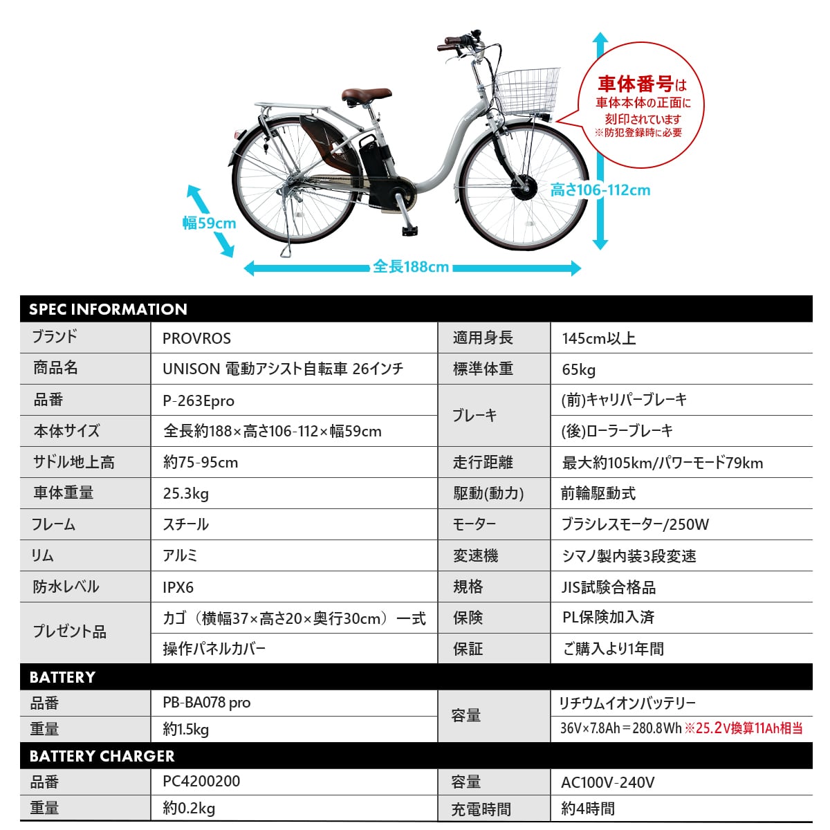 UNISON ユニゾン 電動自転車 電動アシスト自転車 26インチ シマノ内装3段 リチウムイオンバッテリー 前輪駆動 最大105km走行 型式認定 公道可能 VILLAS CYCLE ヴィラスサイクル【メーカー保証1年】P-263Epro