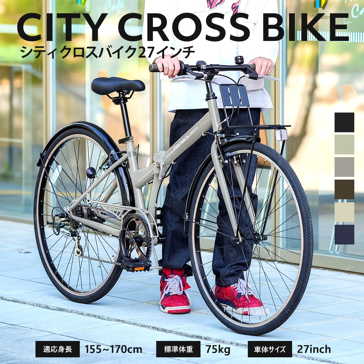![[完成車発送] シティクロスバイク 自転車 27インチ 折りたたみ シマノ6段変速 ギア 折り畳み LEDライト・カギ付き シティバイク クロスバイク フロントキャリア 組立整備済 点検済 完成品 PROVROS プロブロス P-276](https://baseec-img-mng.akamaized.net/images/item/origin/0c9946e2f249283b3065de0f027166b3.jpg?imformat=generic)