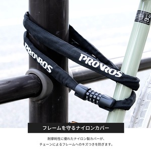 チェーンロック ダイヤルロック 鍵 自転車 長さ1200mm 幅25mm ケーブルロック 4桁 盗難防止 防犯 頑丈 コンパクト 軽量 防犯 頑丈 ロック PROVROS(プロブロス) PLK-002