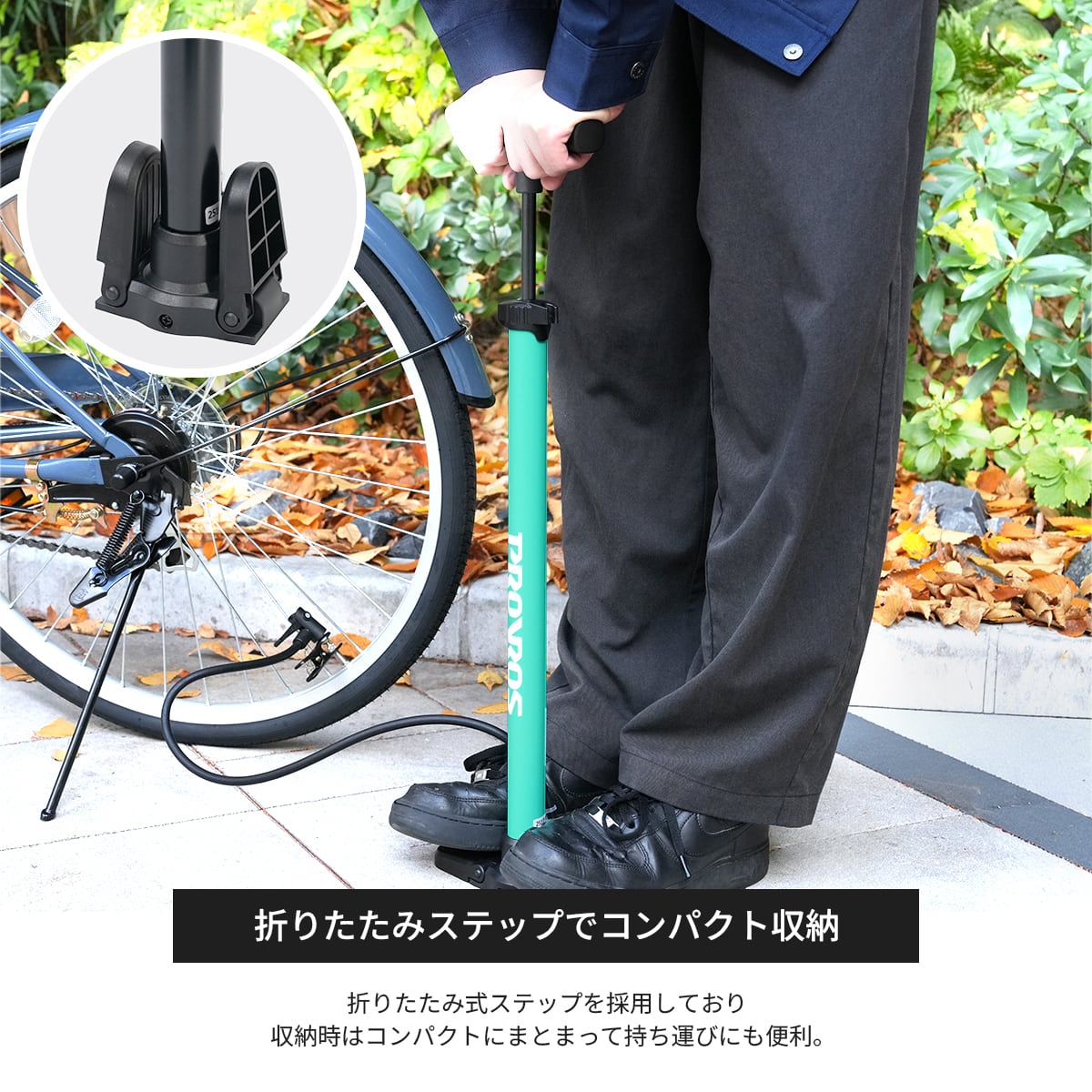 自転車 空気入れ ボール・浮き輪対応 英式 米式 トンボ口金 軽量 折りたたみステップ エアーポンプ SG 手押しポンプ 自転車アクセサリー PROVROS(プロブロス) PPM-001