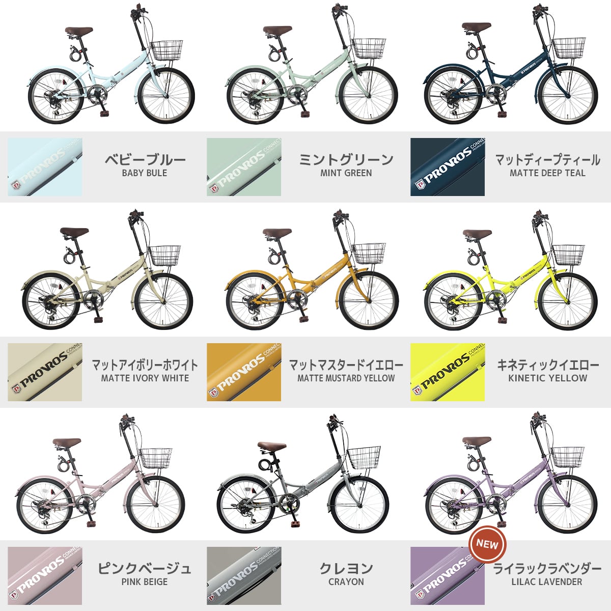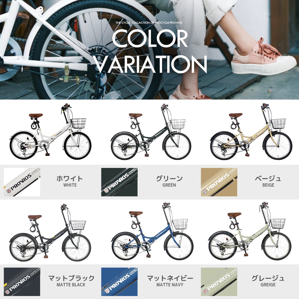 折りたたみ自転車 20インチ 自転車 軽量 安い カゴ付き ライト付 ロック錠 シマノ製 6段変速 PROVROS(プロブロス) P-206 [1年保証]
