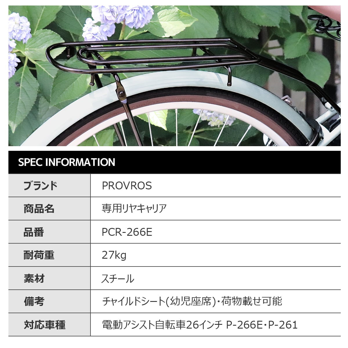 専用リヤキャリア 荷台 自転車用アクセサリー 自転車パーツ サイクル 積載重量27kg 後付け 26インチ対応 プロブロス PCR-266E