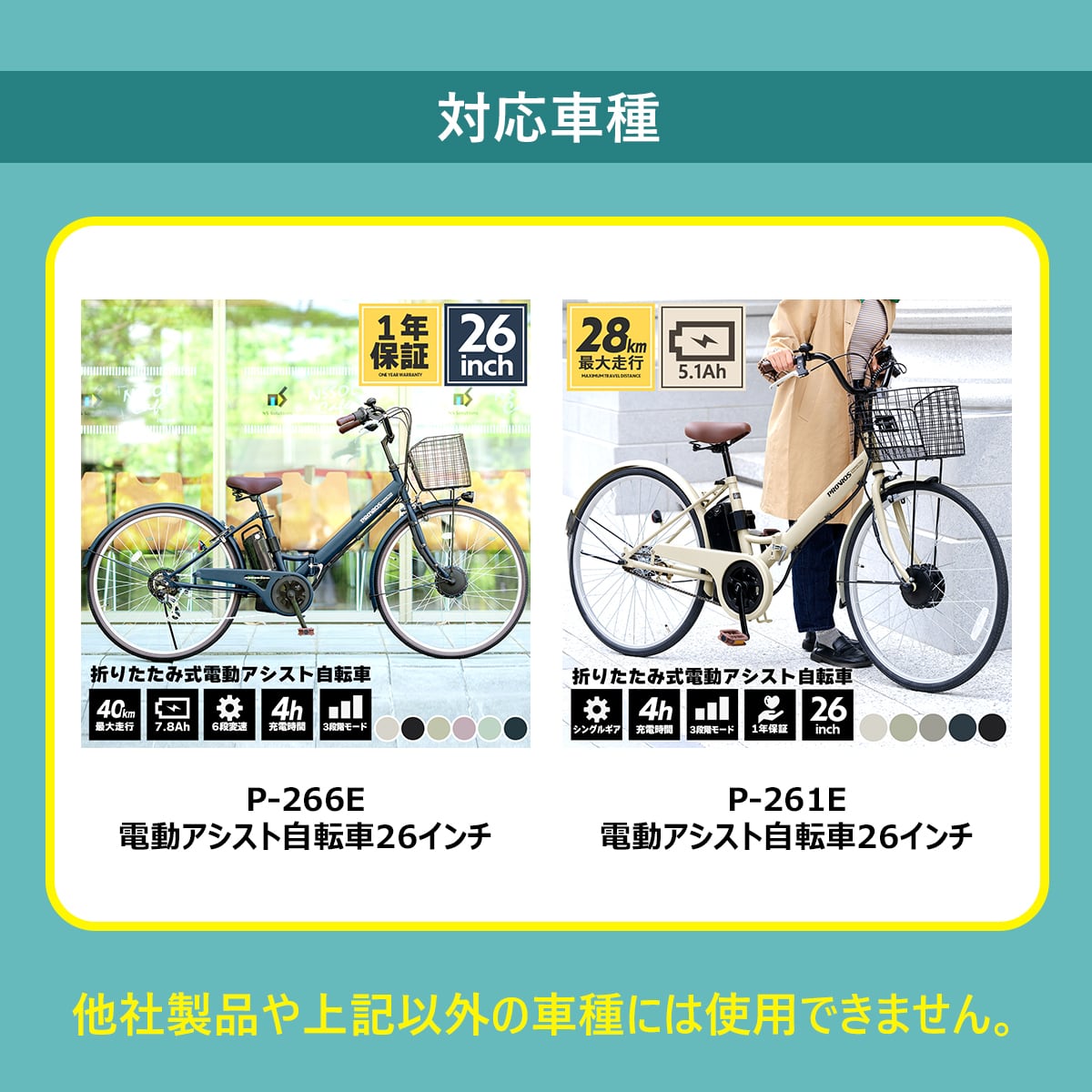 対応車種の「電動アシスト自転車」は「片足スタンド」です。